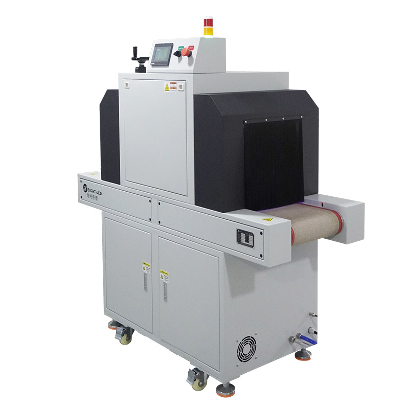 2、設(shè)備提供連續(xù)模式和后端模式可選,連續(xù)模式下,點(diǎn)擊啟動(dòng)按鈕,UV機(jī)傳送帶及UVLED一直工作,點(diǎn)擊停止按鈕停止UV機(jī)工作;后端模式下,點(diǎn)擊啟動(dòng)按鈕,UV機(jī)傳送帶及UVLED開始工作,當(dāng)后端傳感器感應(yīng)到產(chǎn)品后,傳送帶及UVLED停止工作,當(dāng)產(chǎn)品拿走后繼續(xù)進(jìn)入下一個(gè)循環(huán)。
