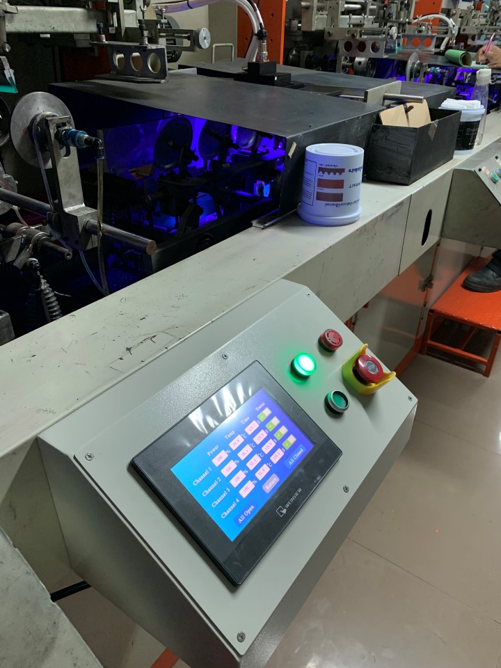 該泰國(guó)客戶定制了我司的一套UVLED固化光源系統(tǒng),加裝在其絲印生產(chǎn)設(shè)備上面,對(duì)塑膠瓶絲印生產(chǎn),其油墨干燥效果非常好,客戶很滿意,產(chǎn)品詳情請(qǐng)點(diǎn)擊http://www.580372.com/uvled3/show/186.html